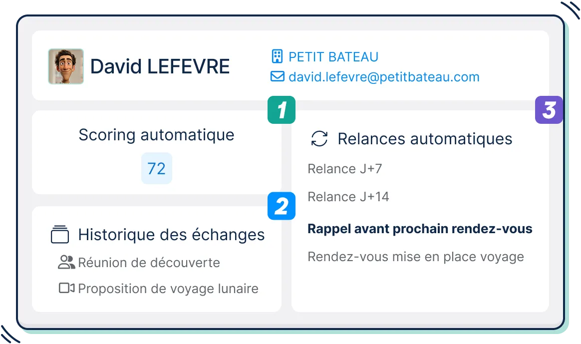 Automatisez l’envoi de mails adaptés aux besoins spécifiques de chaque prospect.