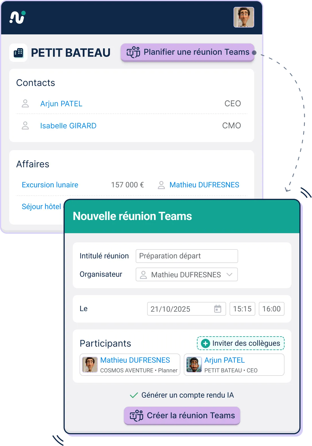 Participants liés automatiquement à sa fiche CRM : plus d’erreurs de suivi